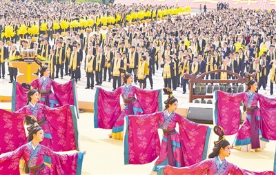 王凱代表省委、省政府發(fā)表了熱情洋溢的致辭,誠摯歡迎各位嘉賓、各界朋友的到來,衷心感謝長期以來給予河南的關(guān)心支持。他說,河南作為黃帝出生地、創(chuàng)業(yè)地、建都地,歷史上幾經(jīng)鼎盛、幾度輝煌。進(jìn)入新時代,中原兒女秉承祖志、奮發(fā)圖強,凝聚了奮勇爭先的創(chuàng)造偉力,續(xù)寫了更加出彩的絢麗篇章,一幅百業(yè)昌隆、物阜民豐、欣欣向榮的壯美畫卷在中原大地徐徐展開。祭祖緬德、當(dāng)繼往而開來,慎終追遠(yuǎn)、須奮斗以自強。習(xí)近平總書記在新時代推動中部地區(qū)崛起座談會上,為中部地區(qū)高質(zhì)量發(fā)展擘畫了新藍(lán)圖、標(biāo)定了新方位、賦予了新使命。我們將始終牢記習(xí)近平總書記殷殷囑托,錨定“兩個確?!?,持續(xù)實施“十大戰(zhàn)略”,全面推進(jìn)中國式現(xiàn)代化建設(shè)河南實踐,在奮力譜寫中部地區(qū)崛起新篇章中勇挑大梁、走在前列,在強國建設(shè)、民族復(fù)興新征程上展現(xiàn)新?lián)?dāng)、作出新貢獻(xiàn)。