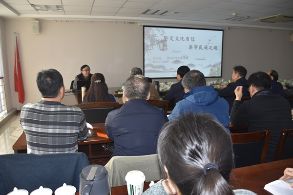 吳教授以《堅(jiān)定文化自信,筑牢民族之魂》為題,圍繞文化自信的含義、牢牢掌握意識(shí)形態(tài)工作領(lǐng)導(dǎo)權(quán)、培育和踐行社會(huì)主義核心價(jià)值觀、繁榮發(fā)展社會(huì)主義文藝等四個(gè)方面進(jìn)行了專題輔導(dǎo)。他認(rèn)為文化自信是一個(gè)民族、一個(gè)國(guó)家以及一個(gè)政黨對(duì)自身文化價(jià)值的充分肯定和積極踐行,并對(duì)其文化的生命力持有的堅(jiān)定信心。他歸納出讓中國(guó)人“自信”的“文化”,至少包括三個(gè)層面:中華優(yōu)秀傳統(tǒng)文化、革命文化、社會(huì)主義先進(jìn)文化。當(dāng)前我們面臨的挑戰(zhàn)和困難前所未有,境內(nèi)外敵對(duì)勢(shì)力插手意識(shí)形態(tài)斗爭(zhēng)的情況越來(lái)越復(fù)雜,形勢(shì)越來(lái)越嚴(yán)峻,多種勢(shì)力聯(lián)手,通過(guò)網(wǎng)絡(luò)、新媒體等各種手段,妄圖摧毀中國(guó)人的自信和共產(chǎn)黨的執(zhí)政根基。我們要按照習(xí)總書(shū)記的要求,堅(jiān)持黨管意識(shí)形態(tài)原則不動(dòng)搖,進(jìn)一步堅(jiān)定共產(chǎn)主義理想信念,從我做起,從現(xiàn)在做起,在意識(shí)形態(tài)斗爭(zhēng)中做到對(duì)黨忠誠(chéng)、個(gè)人干凈、敢于擔(dān)當(dāng),對(duì)一些意識(shí)形態(tài)的挑戰(zhàn)要敢于亮劍。
