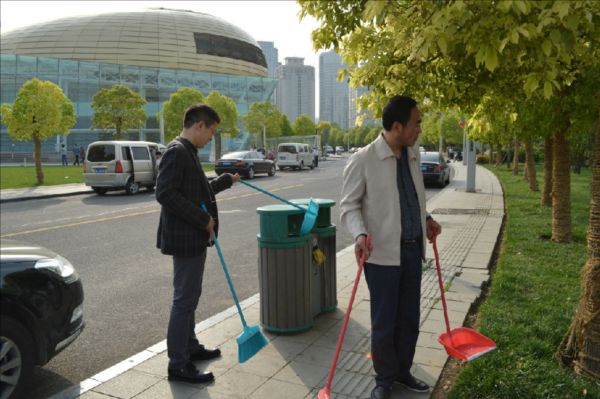 顧不上欣賞春光明媚、水靜人和的美景,碧波蕩漾的如意湖畔出現(xiàn)了建投志愿者服務(wù)隊的身影,大家拿起掃帚、垃圾袋等工具一路前行,看見沿岸偶爾零散的垃圾或不易發(fā)現(xiàn)的紙屑便主動上前進行清理,很快,如意湖周邊的石柱、圍欄、長椅就煥然一新,廣場周邊散落的紙屑、煙頭也被清掃干凈。